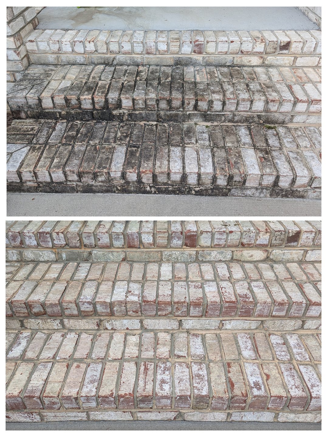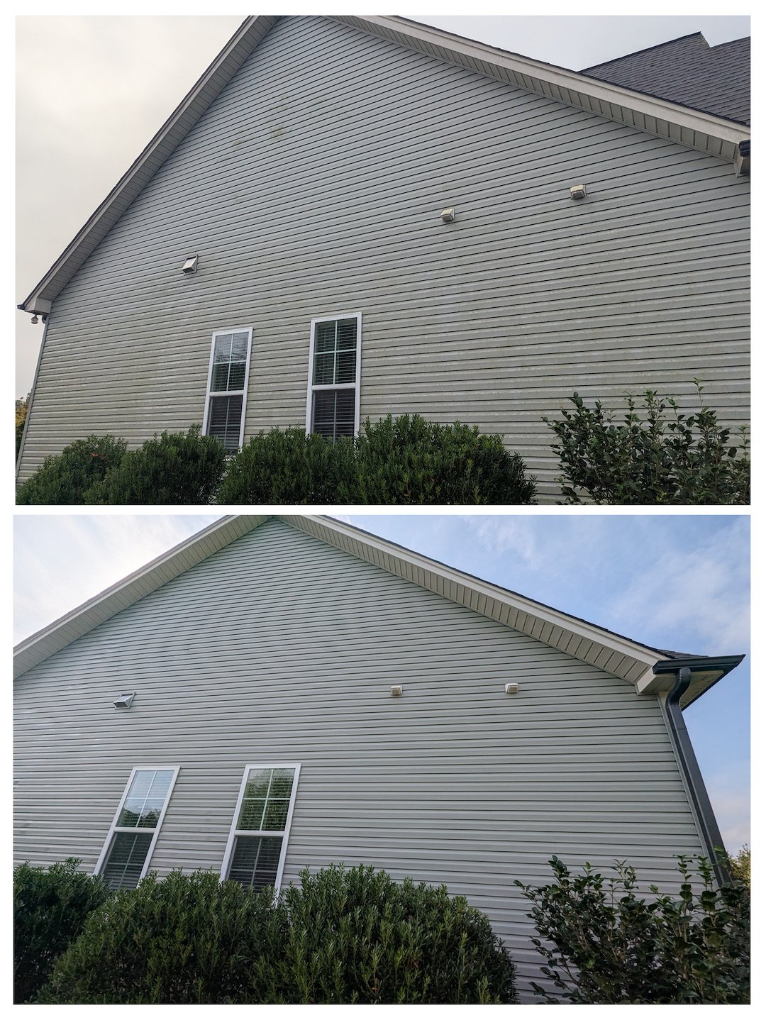 These Greensboro (technically Summer field) homeowners contacted us requesting a powerwash of their home to remove the organic growth from the brick and vinyl. After following all of our pre-work inspection steps and ensuring all property was protected, we proceeded with a house washing to get this home shining like new again. The trim was becoming dark and grimey due to a buildup of mildew but is now bright and almost glowing from the street once again. There is no simpler and more dramatic way to quickly restore your home's curb appeal!