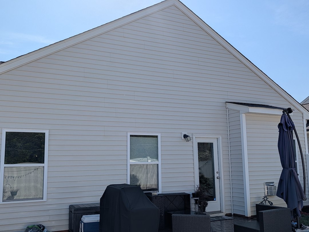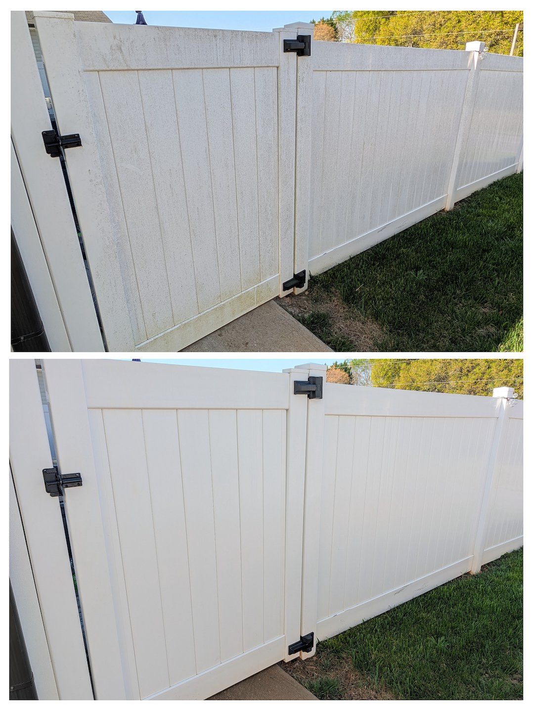 This Greensboro, NC homeowner contacted Berx Exterior Cleaning requesting a house washing. After agreeing on a great price and scheduling, we showed up happy, as always, to deliver on our extreme clean and exceptional service promises! For good measure, a really grimy section of vinyl fence was cleaned although it was not included in the quote. All property protection measures are always taken, including covering/taping electrical components and fixtures and covering sensitive vegetation and even key holes to doors and locks. If it's your home's time to shine, contact us today!