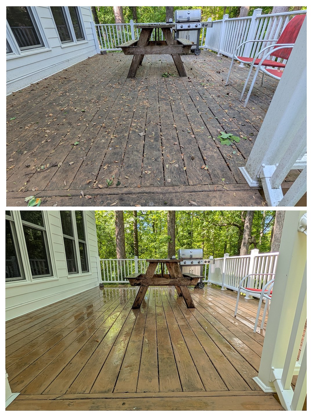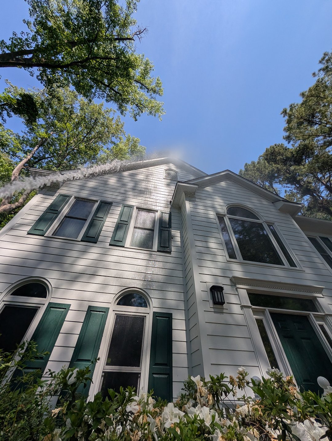 This time of year it just may be in the 30s or it may be 90, like it was on this day. Regardless, we'll be out here getting these gorgeous properties cleaned up and ready for Spring and Summer! This Chapel Hill homeowner trusted us with a house washing, driveway cleaning, deck cleaning, and roof blow off/gutter cleaning. We use every opportunity to deliver on our promises of extreme clean and exceptional service and this one was no exception. We would appreciate the opportunity to do the same for you!