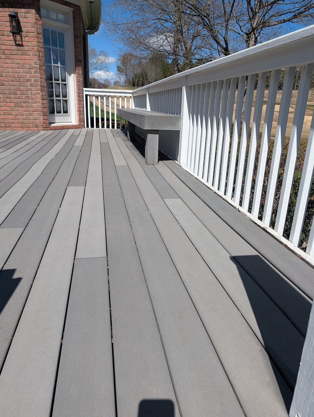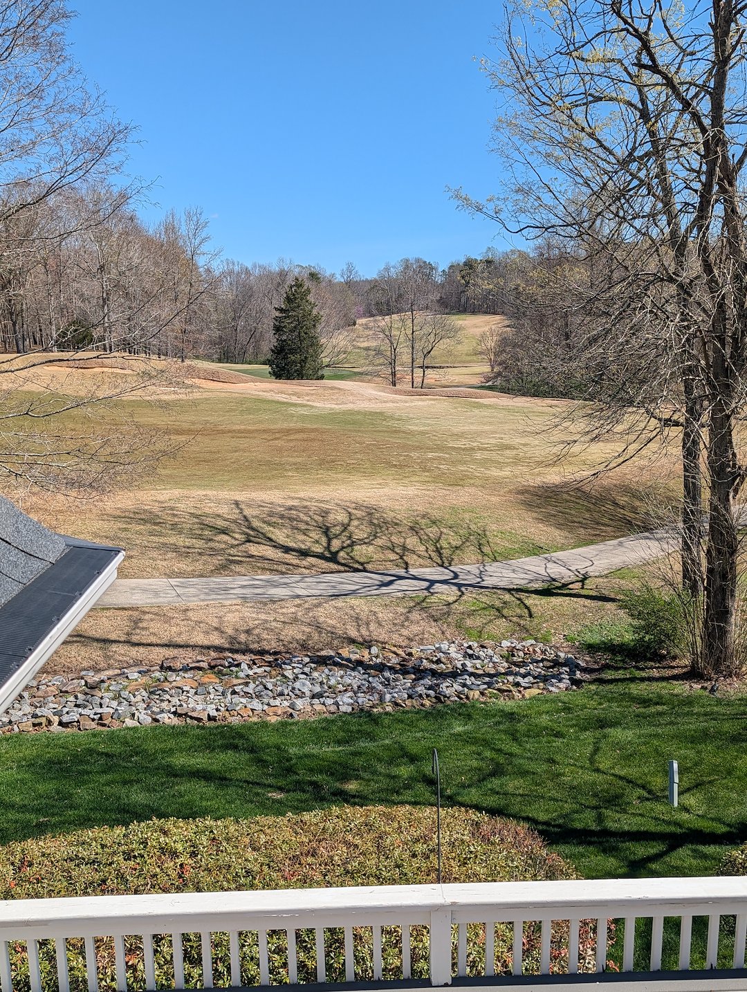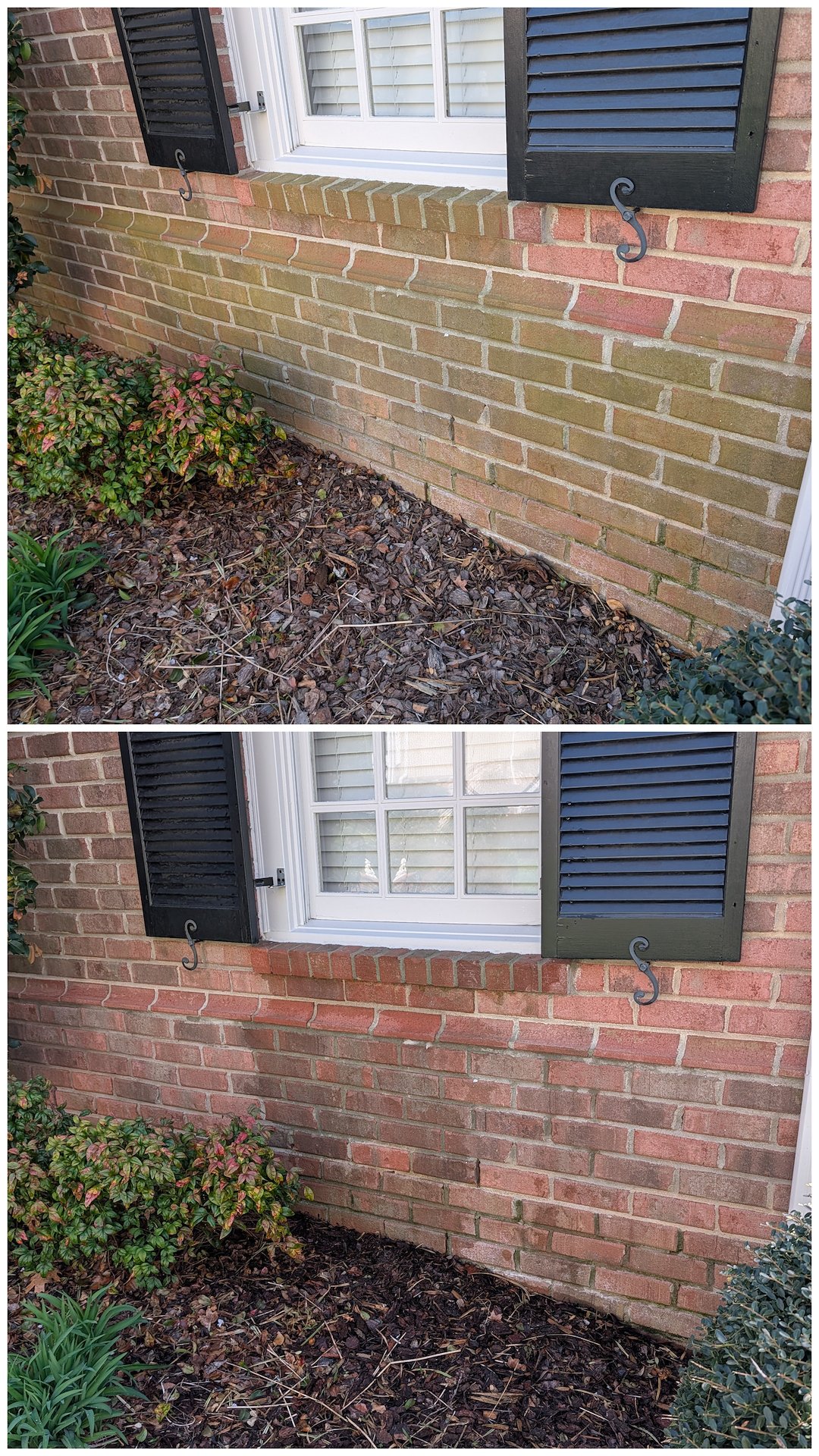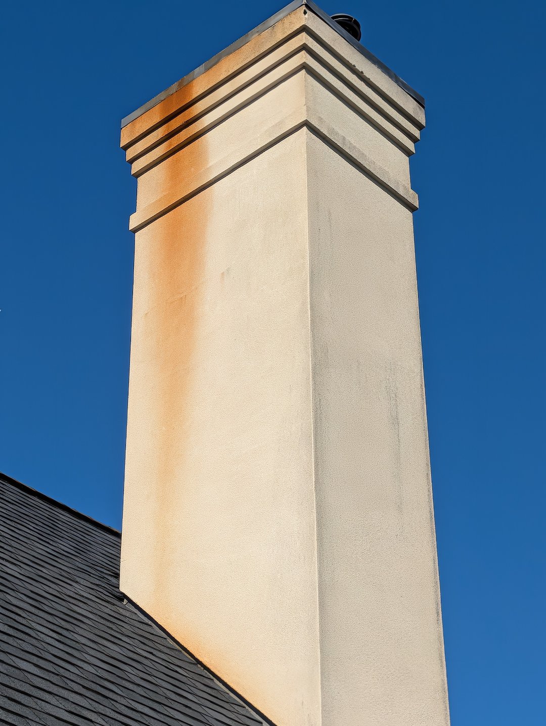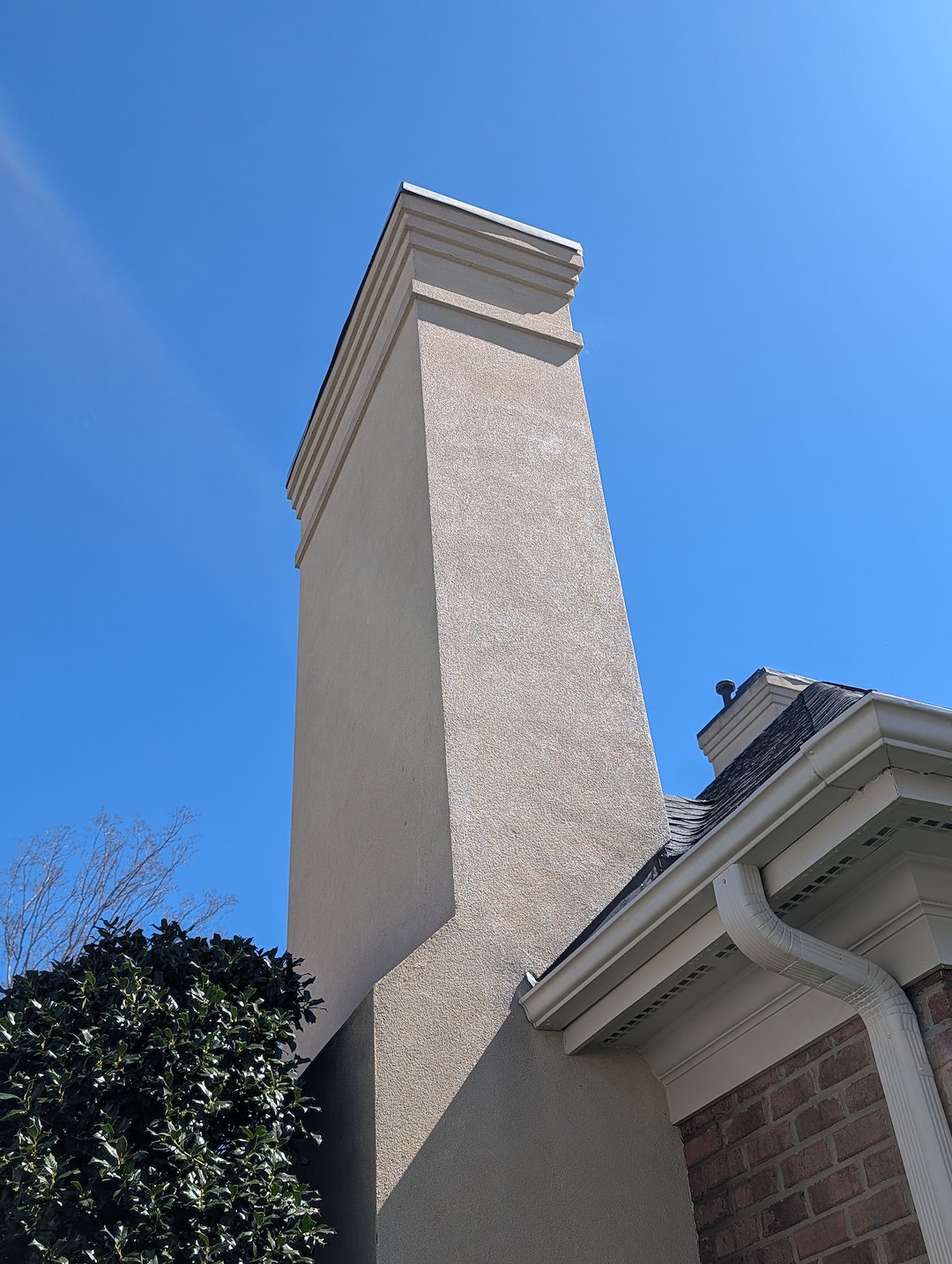 It was a typical breezy, chilly March day but we were able to get started on this one as soon temperatures rose above freezing. This Greensboro homeowner contacted us after noticing it was time for their beautiful home on the golf course to get a house washing and a little exterior cleaning TLC. Parts of this home were stucco and were covered in black algae and rust from the chimney caps. This type of substrate requires a little different treatment and attention and rust stains require a rust removal process. Luckily, we keep chemicals on the truck for such a time as this! We were able to get this home cleaned up and looking great just in time for the golf course traffic to really pick up.